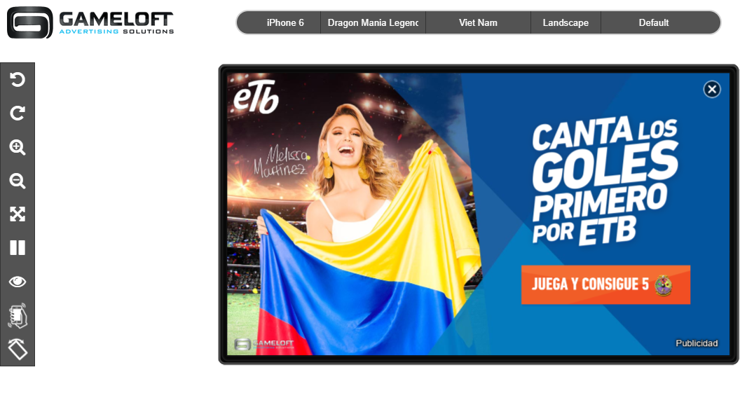 Vea un ejemplo en: Mini-juego desarrollado por Gameloft Advertising Solutions para ETB con temática del mundial de fútbol 2018.